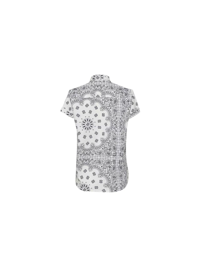 Camisa de manga curta com fechamento frontal feito por botões, a camisa é feita de tecido misto de linho e viscose, com estampa exclusiva bicolor ( 2 cores )de bandana.